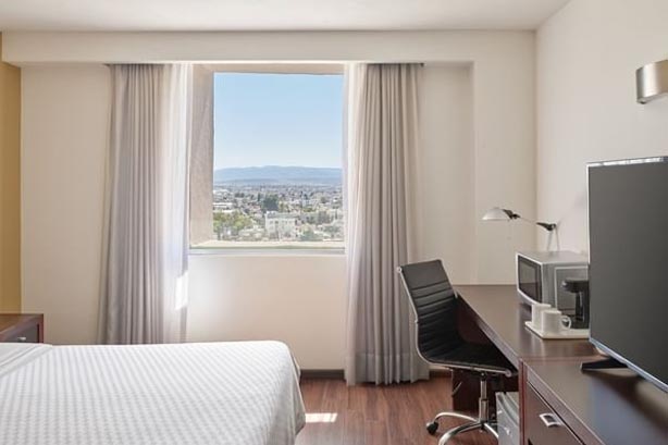 Después de cumplir tus objetivos, descansa en nuestras habitaciones. Degusta algún platillo en nuestro restaurante y si no quieres salir, cuentas con room service. Date un tiempo para ir al gimnasio para ejercitarte.